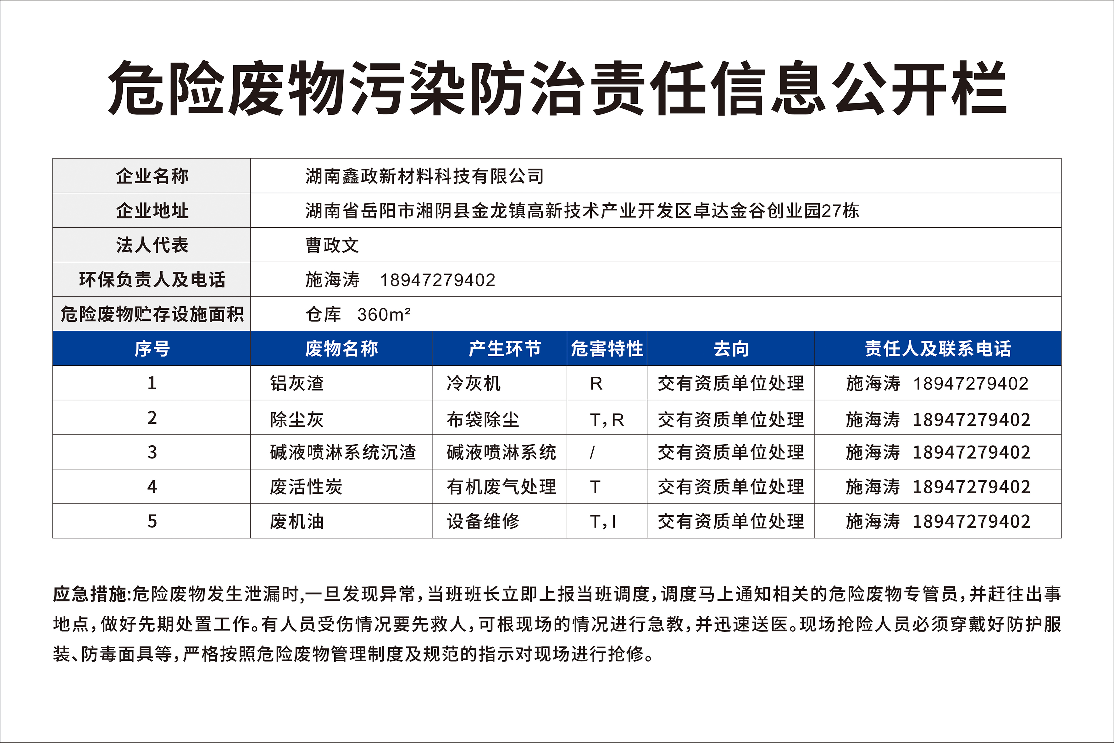 瀏覽次數(shù):1464根據(jù)《中華人民共和國固體廢物污染環(huán)境防治法》的要求,產(chǎn)生固體廢物的單位,應(yīng)當(dāng)依法及時公開固體廢物污染環(huán)境信息,主動接受社會監(jiān)督。結(jié)合我公司實際情況,現(xiàn)將2023年危險廢物污染環(huán)境防治信息公開如下: