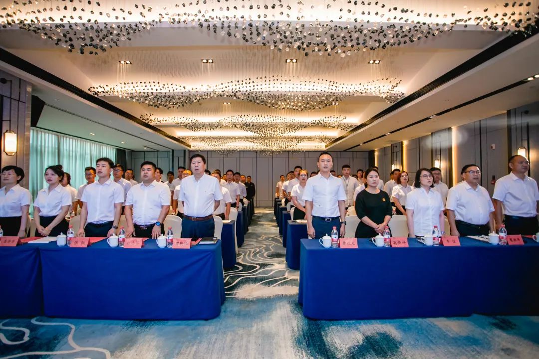 大會(huì)在莊嚴(yán)而雄壯的國(guó)歌聲中拉開(kāi)帷幕。隨后,與會(huì)全體人員集體宣讀鑫政集團(tuán)企業(yè)文化。