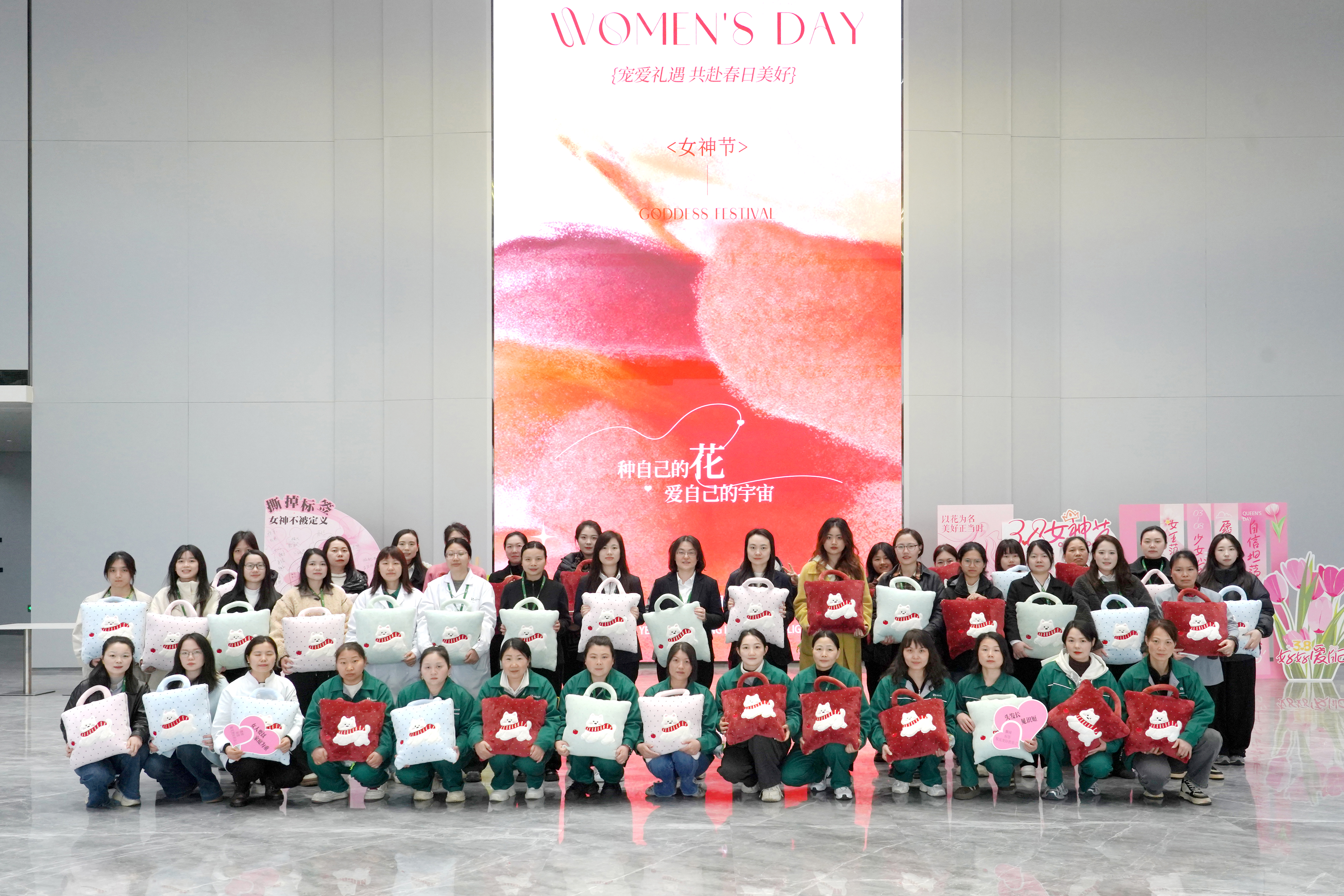 活動最后,全體女員工在LED主屏幕前集合,隨著快門聲響起,2026年鑫政女神節的全家福被永久記錄。